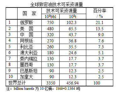 在石油價格大戰(zhàn)中提及的頁巖油是指致密油。根據(jù)美國能源情報署資助的先進(jìn)資源國際公司(Advanced Resources International, Inc.)于2013年的評價,俄羅斯致密油技術(shù)可采資源量最多,居世界第一,其次為美國和中國,三個國家的致密油技術(shù)可采資源量之和占世界總量的43.6%。